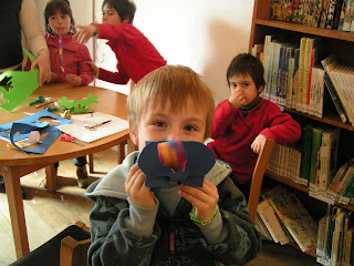 As crianças que participaram fizeram umas línguas da sogra diferentes. Com musgami (uma folha num material de borracha), verde e azul, fizeram elefantes e sapos que animavam ainda mais a língua da sogra.